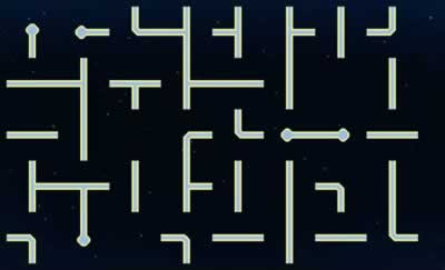 パイプや道などを回転させて、うまくつなげていくパズルを9個紹介。基本的にはその位置で90度ずつ回転させることができ、位置の移動はできない。