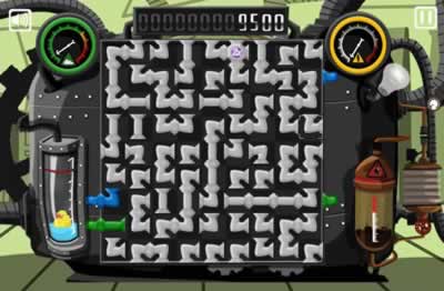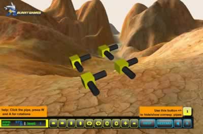 3Dの画面でパイプをつなぐ。マウスはボタンクリックやパイプ選択で、WキーとAキーで回転できる。