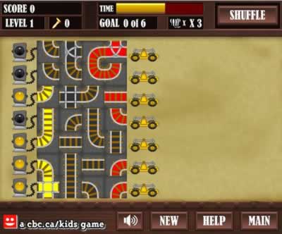 線路をトラックや電車までつないぐ。信号からつながっている線路は黄色に変わる。