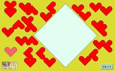 ハートが2つつながったピース13個とハートを正方形に詰める